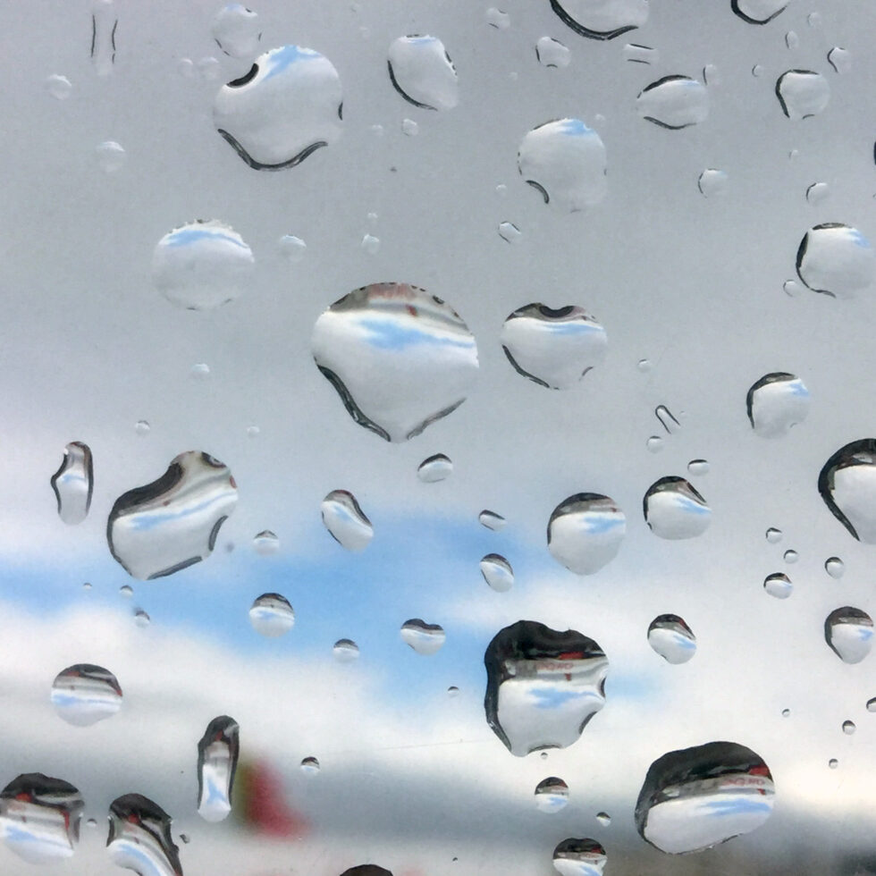 Regentropfen, die an mein FlugzeugFenster klopfen